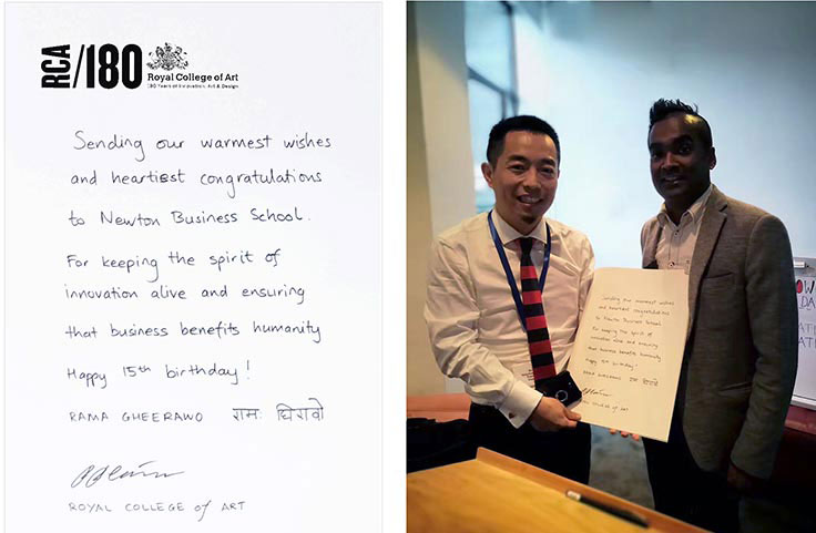Rama Gheerawo在英國倫敦為香港高等商學院十五周年慶題詞,祝賀香港高等商學院Hong Kong Higher School of Business為亞洲時尚屆培養出眾多傑出人才。