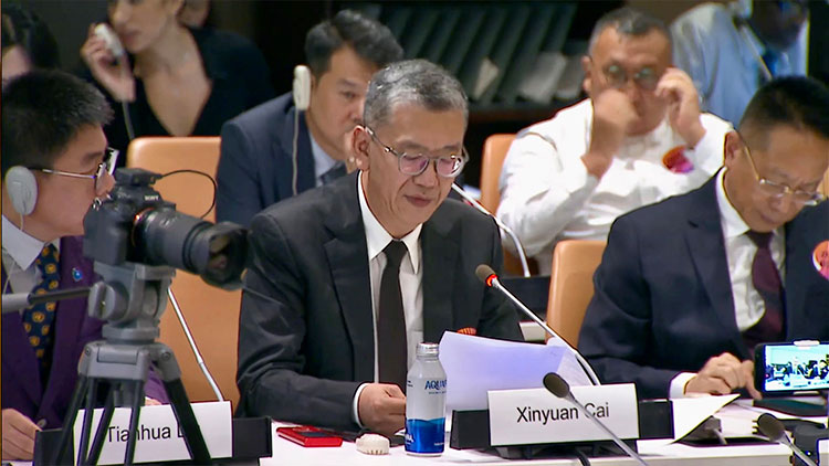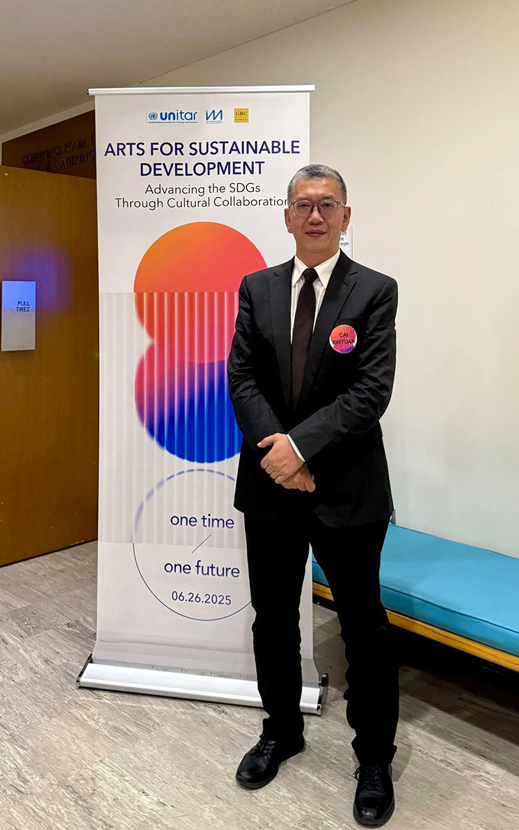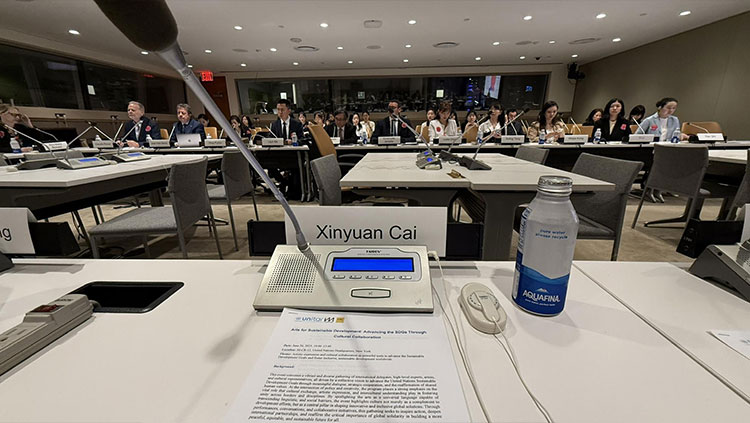 美国纽约-2025年6月26日,华中科技大学设计学院院长、教授、博导,中欧时尚研究院兼职教授蔡新元受邀出席了在联合国总部举办的“可持续发展的艺术:通过文化合作推进可持续发展目标(SDGs)”国际会议,并作为“教育与艺术的未来格局:全球化时代的创新与发展”专题会议的特邀嘉宾发表演讲,围绕“共创未来——在全球化与智能时代重塑艺术教育与协作的可能”这一主题展开论述。