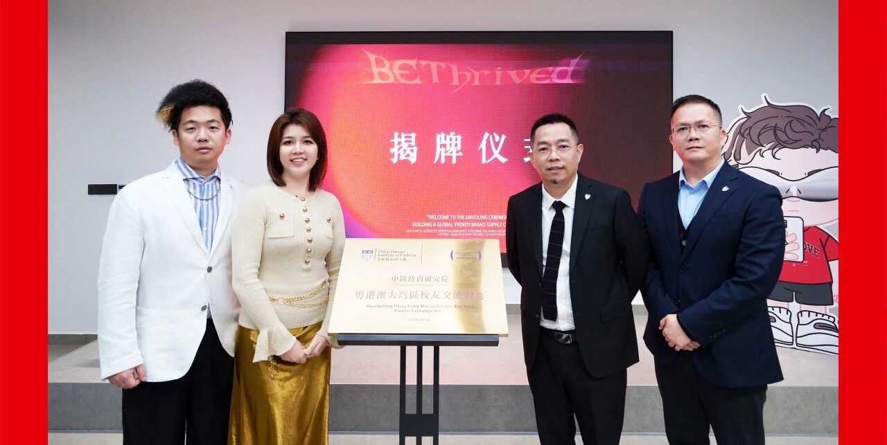 活動中,中歐時尚研究院院長吳波博士與校友會會長駱漢明,將“粵港澳大灣區時尚交流基地”授予BE潮牌供應鏈平臺。作為中歐時尚研究院優秀校友代表及國際潮牌研究院院長,BE THRIVED潮牌供應鏈創始人陳珠珍接牌,標志著這一深度產業夥伴被正式納入研究院的協同生態。
